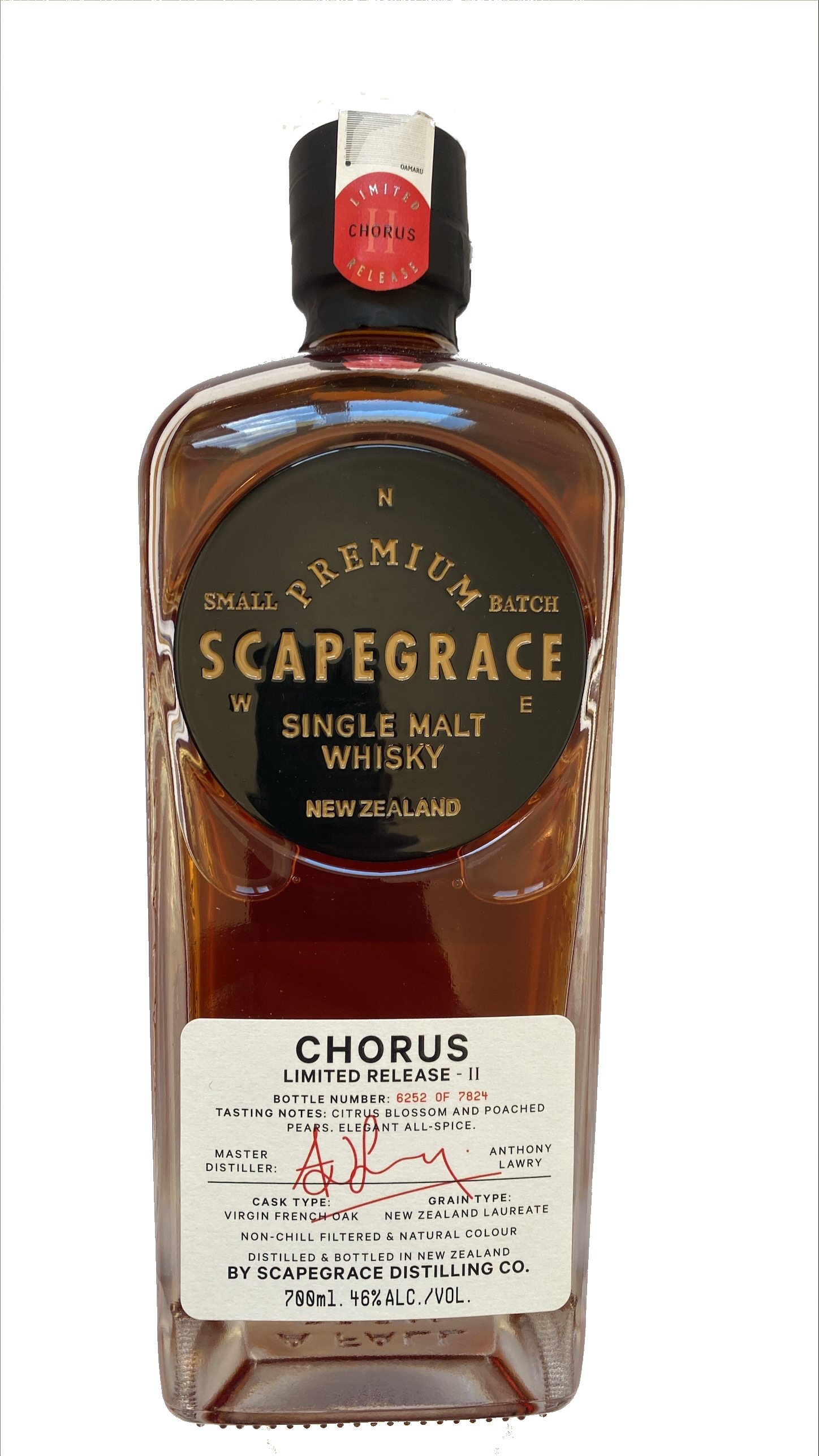 Single malt. Maturation fûts de bourbon de premier remplissage Bourbon, en fûts de vin français et en fûts de Pedro Ximenez.