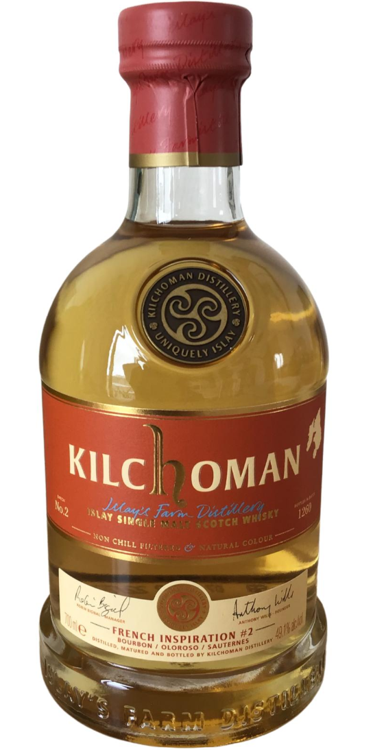blanc (fraîcheur et acidité) et le Muscadelle (arômes floraux). Le travail de KILCHOMAN est donc après une double maturation en fût de Bourbon et de Sherry, qui somme toute est devenue assez classique, de rajouter une touche franche et française, permettant ainsi de (dé)montrer encore une fois, l’influence du fût sur le distillat et sûrement d’accrocher un peu plus l’amateur français. Même si cet élevage en fût, n’est pas exceptionnel, il reste tout de même assez rare. Vous trouverez ainsi chez GLENMORANGIE le Nectar d’Or, avec une maturation complète en fûts de Sauternes, chez BENRIACH un embouteillage avec une finition en Sauternes et chez EDRADOUR, des séries limitées.
