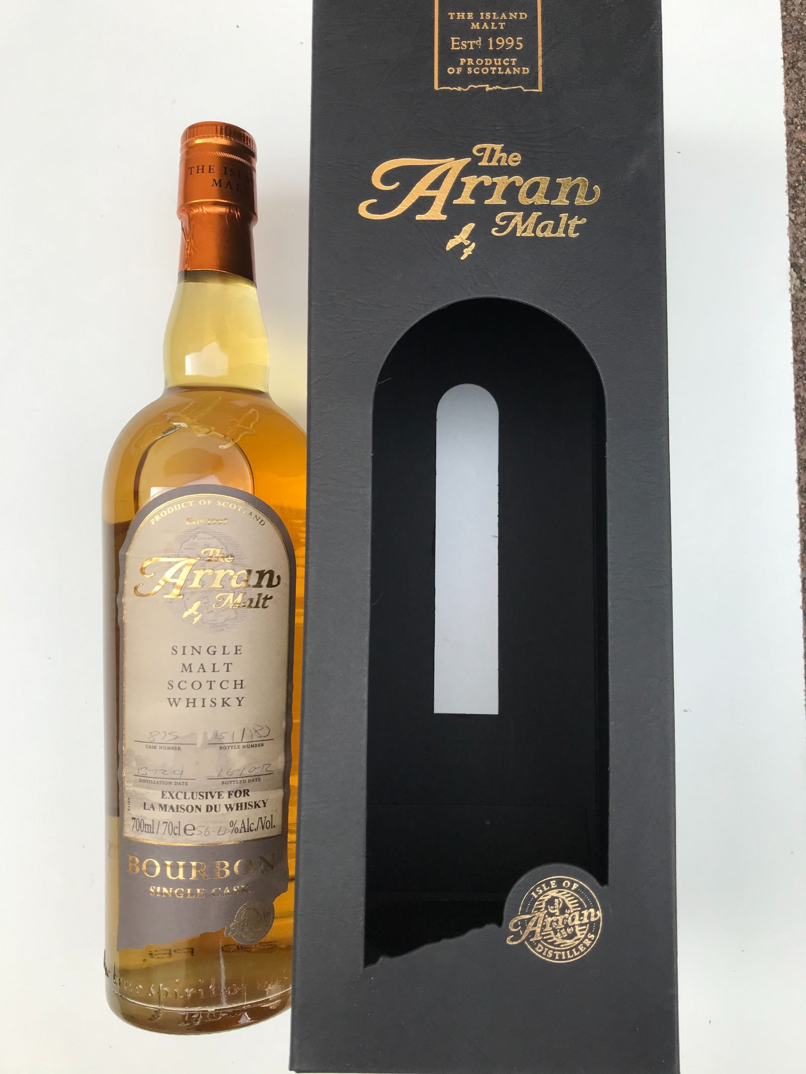 Il existe des distilleries pour lesquelles une certaine affection grandit en notre cœur. Arran est sûrement de celle-là. Peut-être en raison d’un début modeste, mais avec une recherche d'excellence. Elle a su convaincre au fil du temps en nous présentant une large palette d’embouteillages et de maturations. Ainsi, assez tôt après le début de sa production, c’est-à-dire à partir des années 1995/1996, elle proposera des maturations en fût de Cognac et en fût de calvados. Pour l’époque c’était assez innovant. Cela montre une volonté de sortir (doucement) des sentiers battus par le bourbon et le sherry. La bouteille que nous dégustations, restera, elle, tranquillement dans un fût de bourbon des plus classiques.