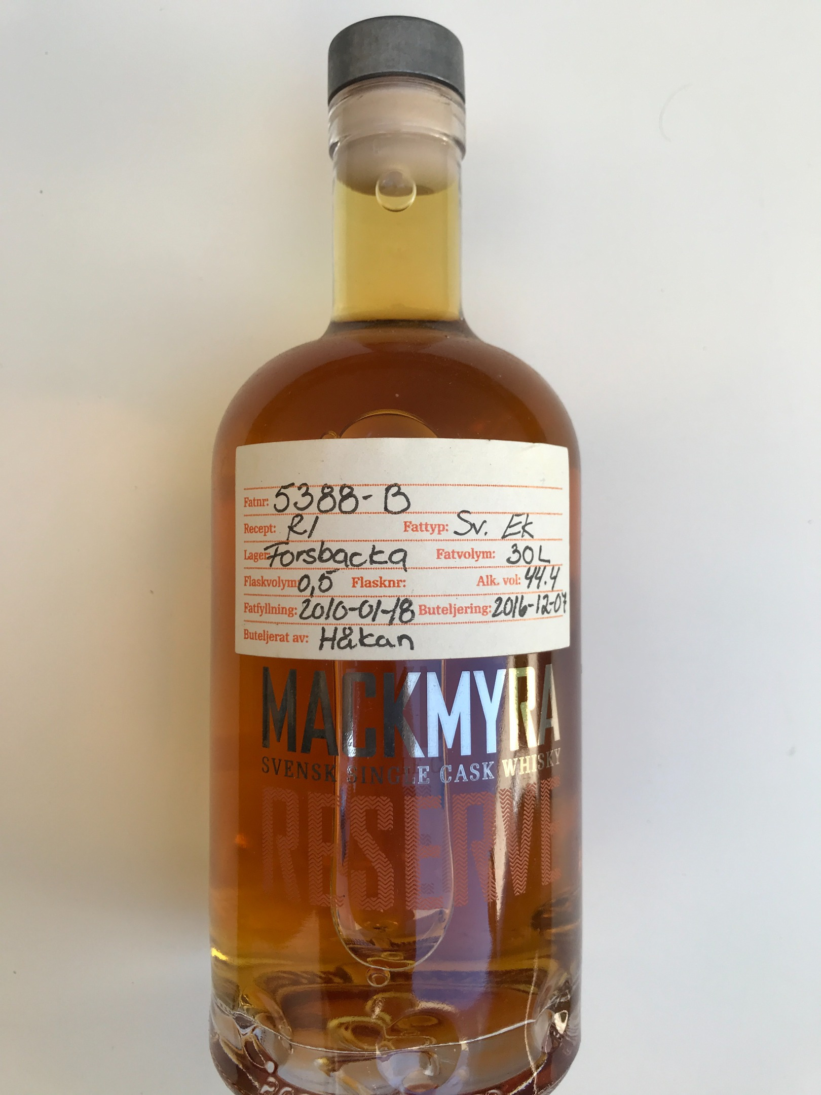 Nous retrouvons cette bouteille de Mackmyra, proposée à la dégustation du 15 décembre 2016. Elle est restée tranquillement dans le stock du WAC et n’a rien perdu de ces qualités. Cette distillerie s’est rapidement fait connaître, notamment en raison de sa forme de son bâtiment principal, un grande tour, où tout commence par le haut, et en raison de l’utilisation de petits fûts pour sa maturation.