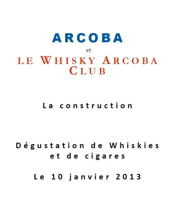 Le Whisky Arcoba Club débute. Il débute dans la dégustation et aussi dans la construction. Mais il démarre fortement, avec une dégustation de whiskies et de cigares.