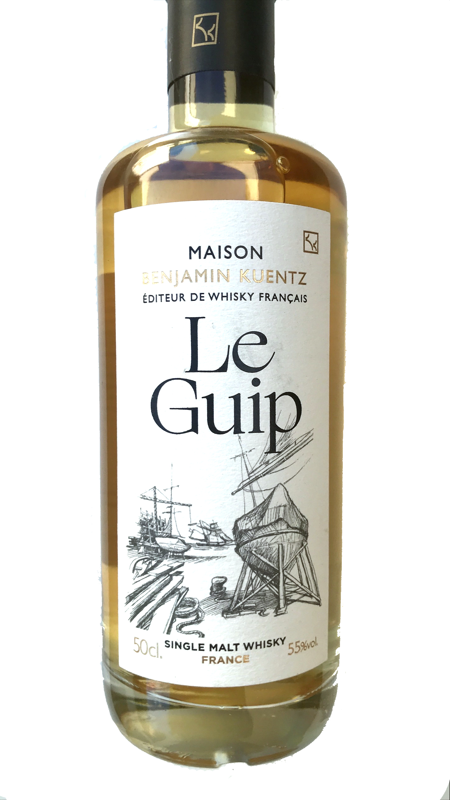 Le Guip appartient à ces whiskies secs et charpentés comme des marins, capables d'affronter la houle et les vents puissants. Son nom est inspiré d'une rencontre avec un chantier naval de Brest qui, à l'instar des maîtres-tonneliers, travaille les plus beaux bois pour ses créations.