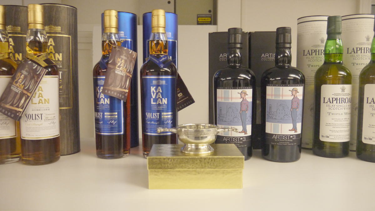 Le toit du distillat, c'est le fût. Quelles sont les influances du fût sur le même distillat de départ. Nous le découvrons au travers de la distillerie KAVALAN et de ses trois finitions dans la gamme solist. La première, le Kavalan Vinho vieilli intégralement dans des fûts de chêne américain ayant contenu du vin (blanc et rouge). Il a été médaille d’or au San Francisco World Spirits 2012. La deuxième, le Kavalan Solist Bourbon vieilli dans des fûts de chêne américain ayant contenu du bourbon. Là aussi une nombreux prix seront donnés à cet embouteillage. (Notamment médaille d'Or et 'Trophy' à l'International Spirit Challenge 2016, médaille d'Or Outstanding à l'International Wine & Spirit Competition 2013). Et pour la troisième, il s'agit du Kavalan Solist sherry. La finition est en fûts de xérès oloroso.